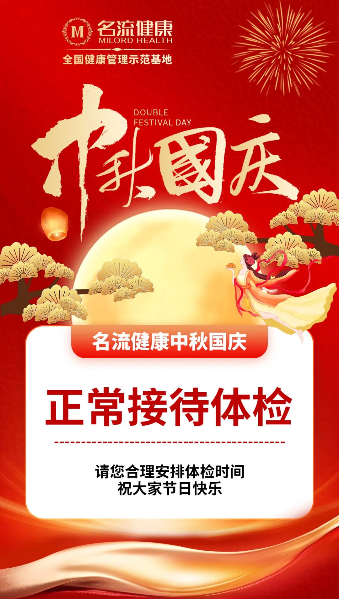 国庆假期即将来临,为了更好提供体检和健康管理服务,名流健康体检中心将正常接待体检。请意向体检的各位朋友,提前预约安排。